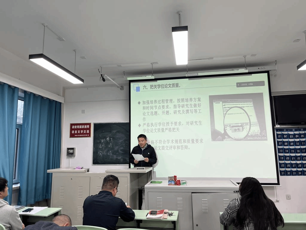 会议上,学院党委书记、院长邹赞就此次培训内容做重点安排。他指出,研究生导师责任重大,意义非凡,应严格落实导师是研究生培养第一责任人的要求,坚持言传与身教相统一,以德立身、以德立学、以德施教,遵循研究生教育规律,潜心研究生培养,做研究生成长成才的指导者和引路人。