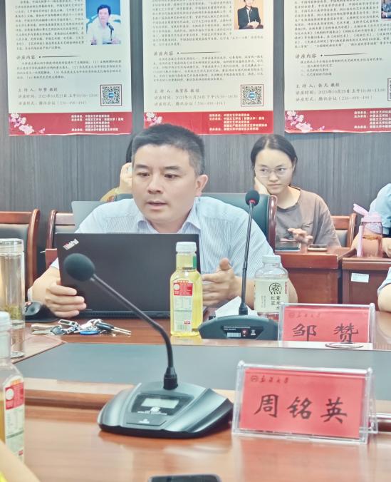 与谈环节,邹赞教授就Péter教授的讲座分享了以下几点思考:首先,应当重视学术史和学科史的研究,始终追问“我是谁”“我从哪里来”“要到哪里去”的学科定位;其次,将中国比较文学研究置于全球化语境中,不断探索中国学派的问题意识和理论特质;最后,邹赞教授总结道,中国学者应更加积极主动参与到国际学术共同体的发展中并发出自己的声音。